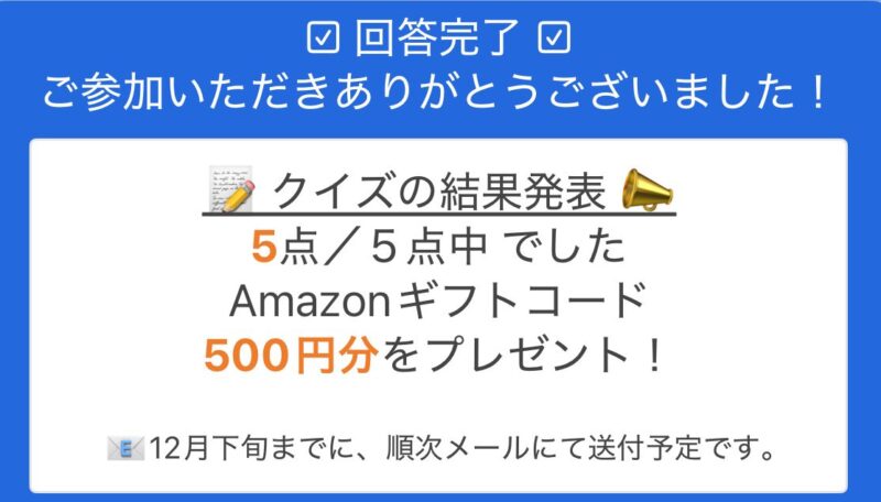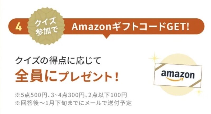 クイズ+アンケートに答えると、アマギフが必ずもらえます🎁