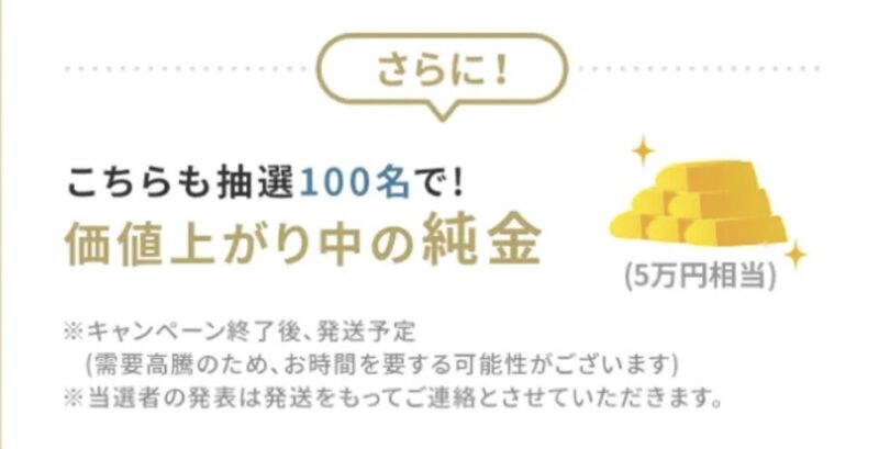 ゴールドは今人気で買いたくても買えないこともあるから、ゲットできたら嬉しいよね!しかも5万円相当ってすごくない?