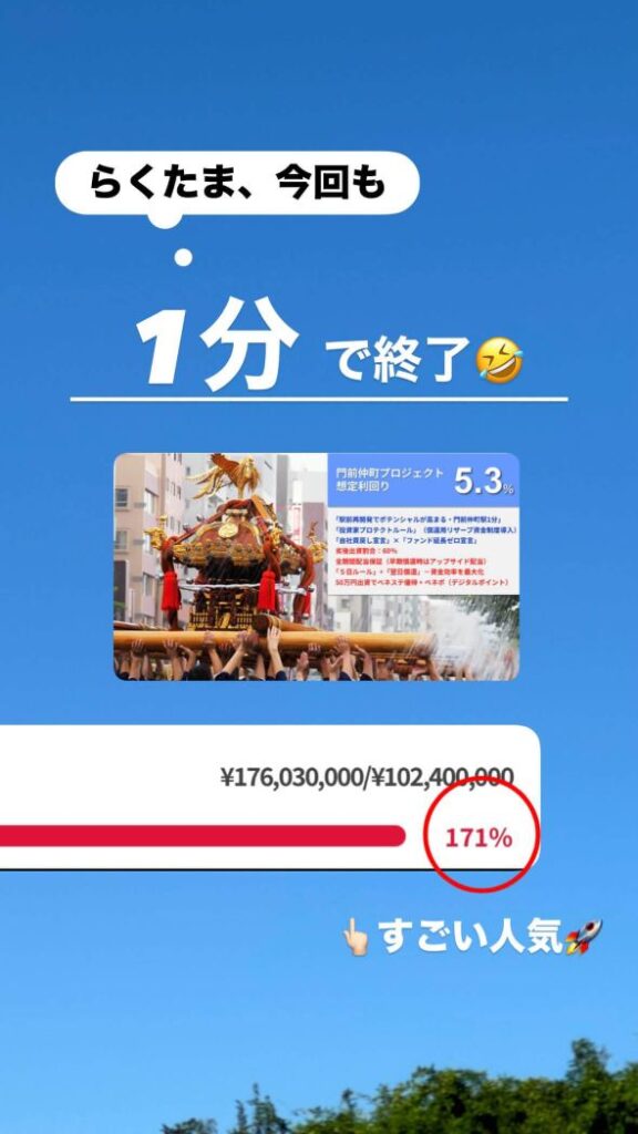 らくたまで運用中ファンドの規模に対して、2025年10月現在、10億円という資金は十分な金額ということが言えます