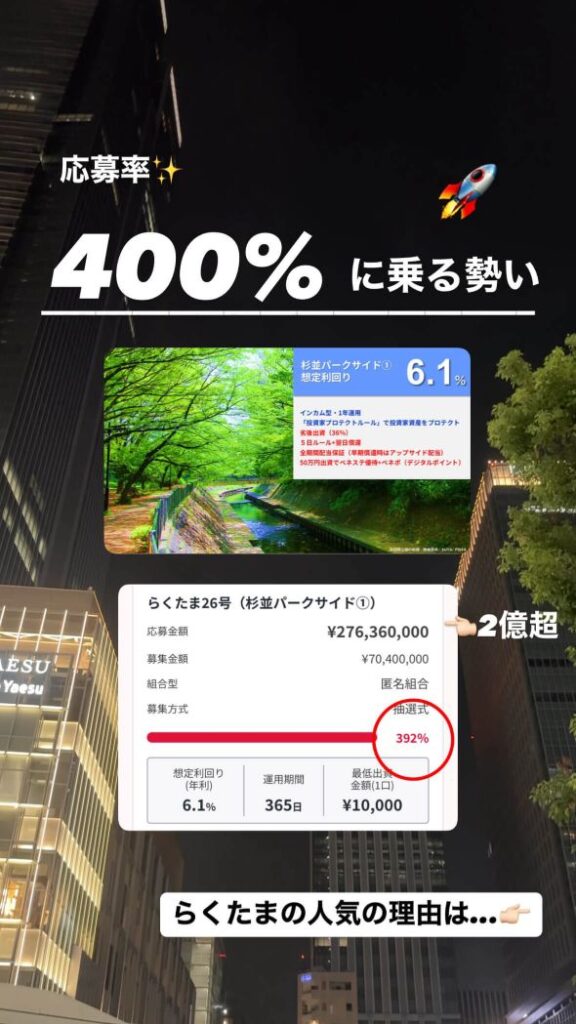 登録内容の審査が完了してメールが届いたら、らくたまのファンドに応募することができます!✨