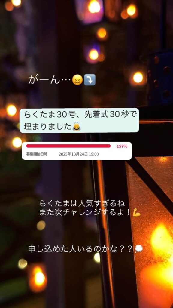 わからないことがあれば、いつでもDMしてね!らくたまで、ちょっと先の楽しみ増やしていこう!
