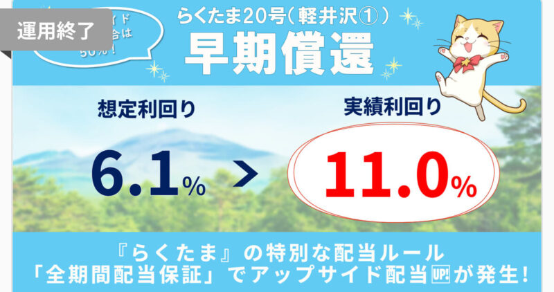 つい最近では、10月に20号ファンドが早期償還されて、アップサイド配当になったよ!
