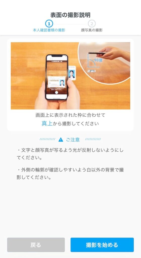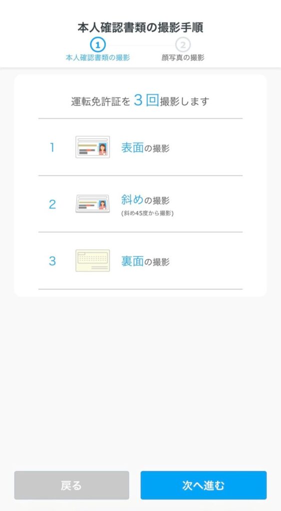 ✔指示に従って、表・裏・斜めの3枚撮影します。