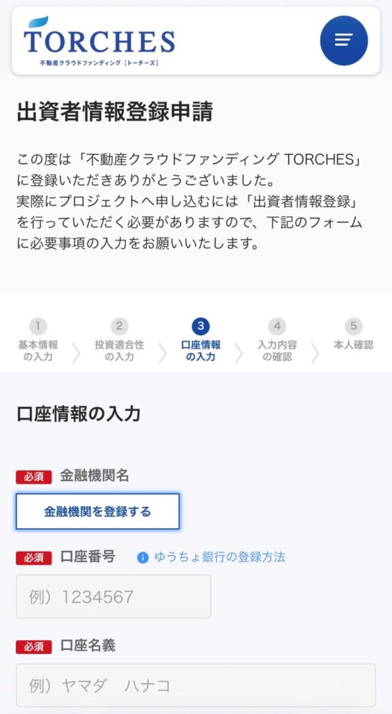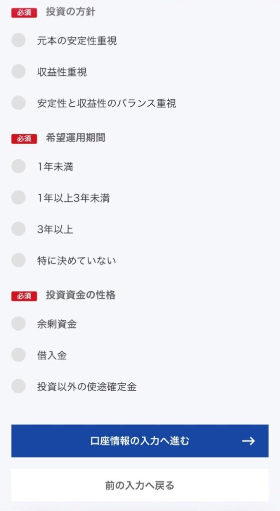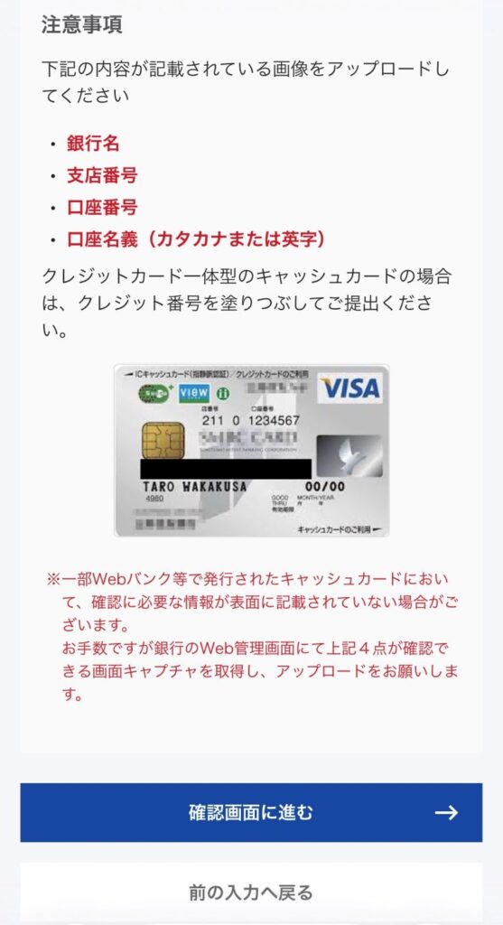 →入力したら、「口座情報の入力へ進む」をタップ。