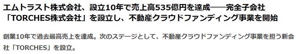 トーチーズは、「エムトラスト社」の100%子会社✨