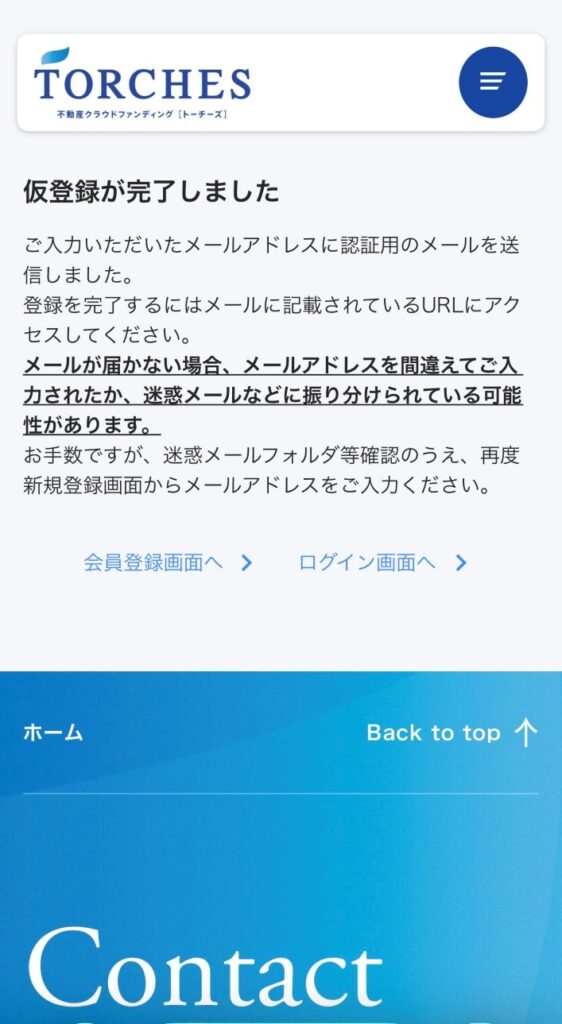 仮登録が完了したら、届いたメールのリンクから本登録をします。
